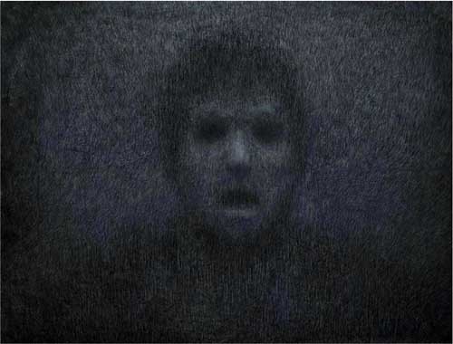 Open Mind II (2010) Filmprint, conte, pastel, pencil and matte paper on canvas 42.72 x 55.31 inches 108.5 x 140.5 cm