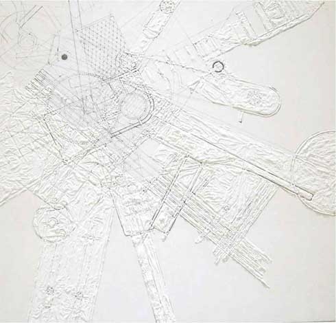 Heater (2010) Pencil, synthetic resin paint and calcium carbonate on shaped wood panel 23.62 x 23.62 x 4.84 inches 60 x 60 x 12.3 cm