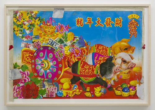 Someones wish for someone (pig) (2013) Found Chinese New Year Picture 27.87 x 41.14 inches 70.8 x 104.5 cm